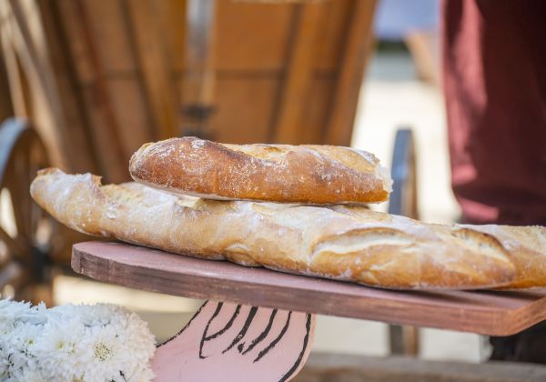 Selbstgemachtes Brot wird direkt verköstigt. Getränke gegen Aufpreis.